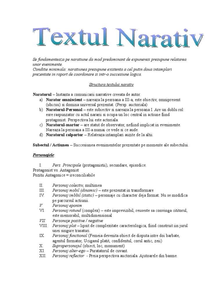 Ilustrează Două Caracteristici Ale Unui Text Narativ Literar Cu Exemple Din Textul A Brainly Ro