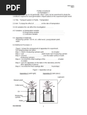 Transpiration Experiment Atmosphere Of Earth