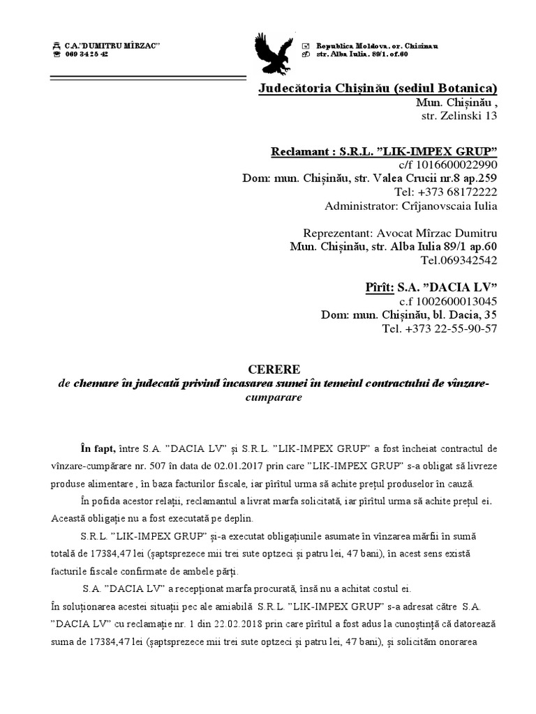 Cererea De Chemare In Judecată Aeroportul Chișinău
