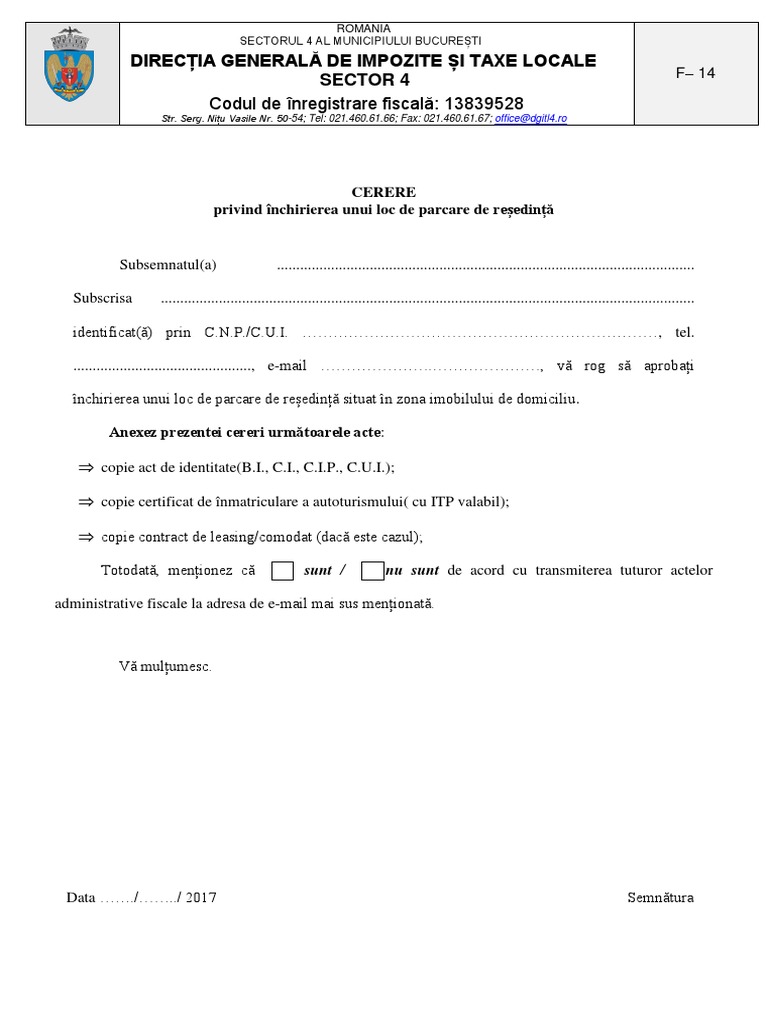 F 14 Cerere Acordare Loc De Parcare Pdf