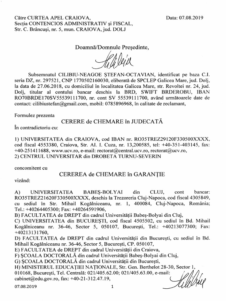Cerere Chemare Judecata Ucv
