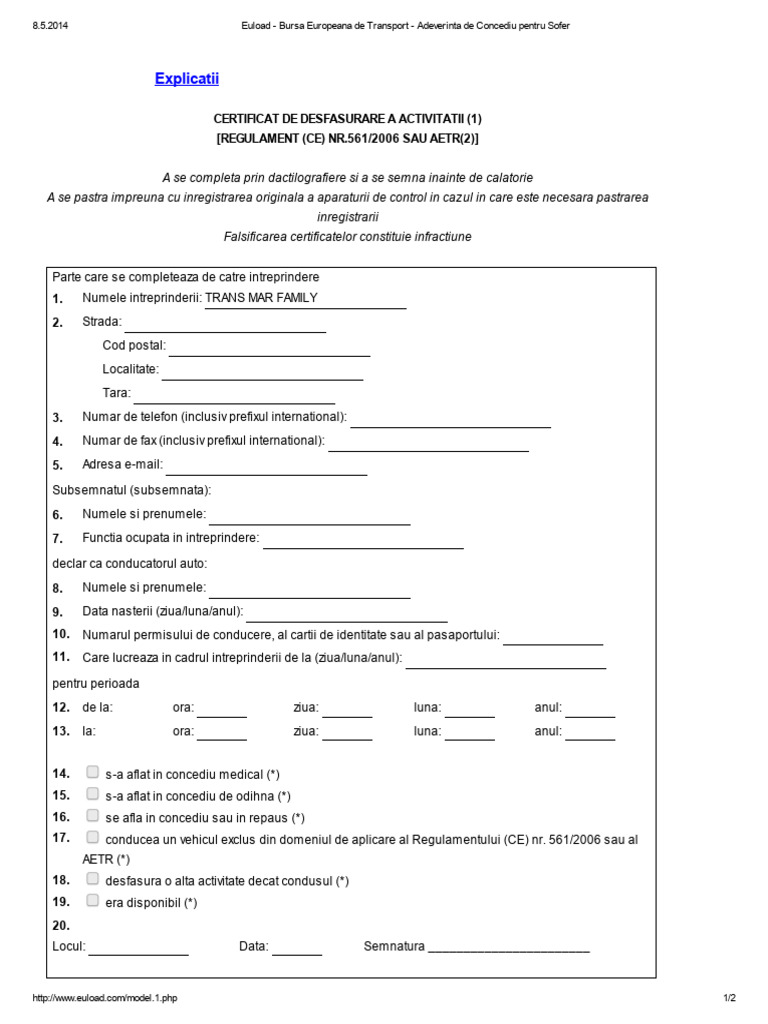 Adeverinta Concediu Pt Soferi Tir Tip Arr Romana